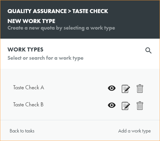 The work type is displayed in the Tasks Management screen: