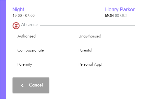 Absence Authorised, Unauthorised, Compassionate, Parental, Paternity, Personal Appt.