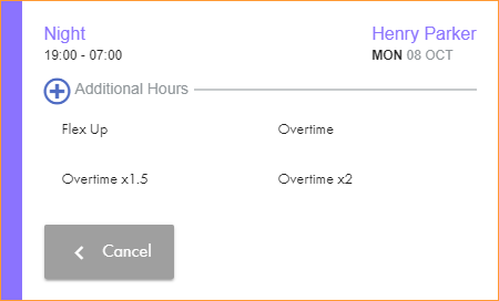 Additional Hours Flex Up, Overtime, Overtime x1.5, Overtime x2.