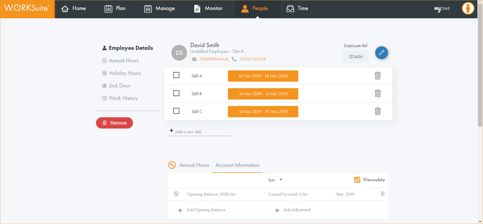 Note: The Account Information sections can be configured to suit you. The example shown uses Annual Hours, Holiday Hours and Sick Days. Click here for more help understanding employee accounts.
