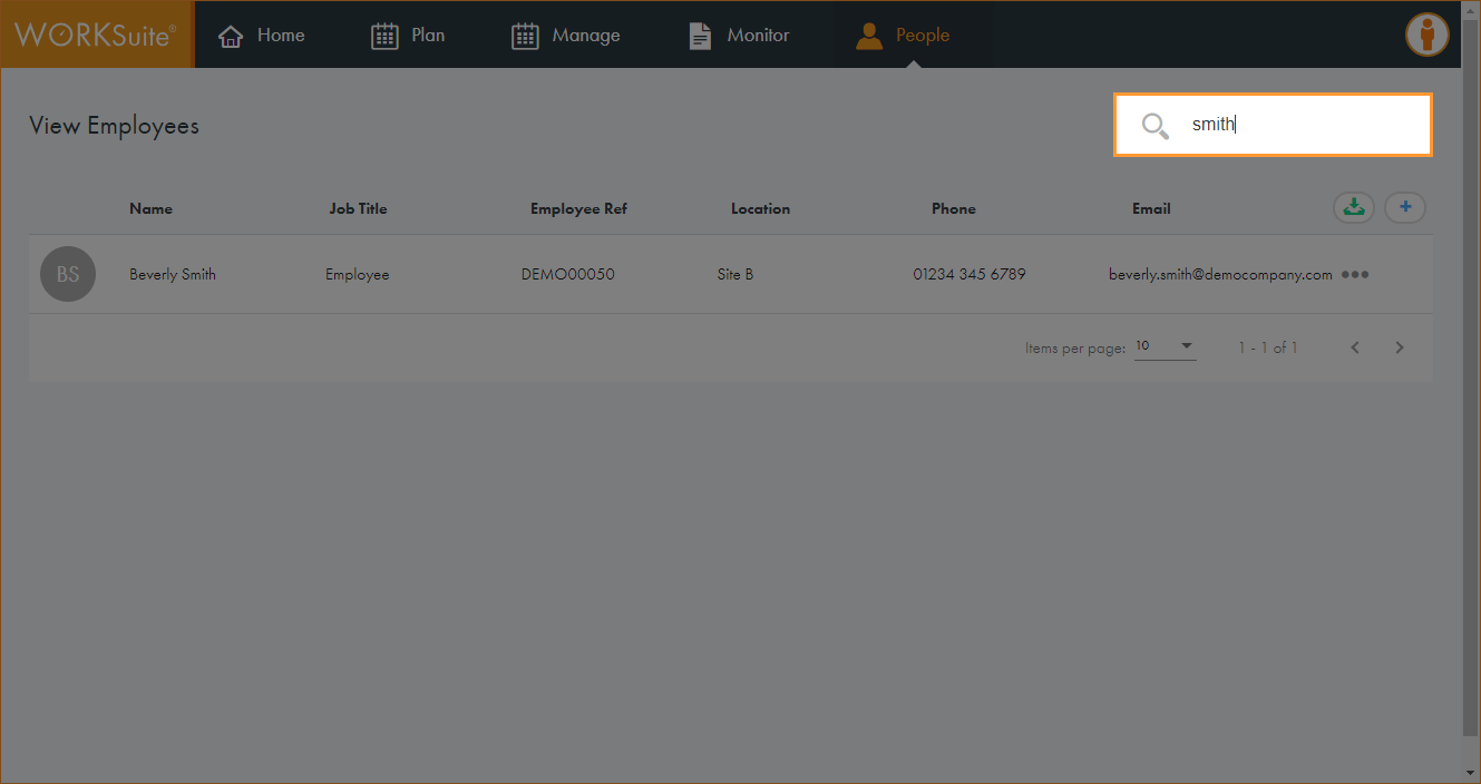Use the People tab to look up an employee’s contact details. You can contact an employee directly from WORKSuite