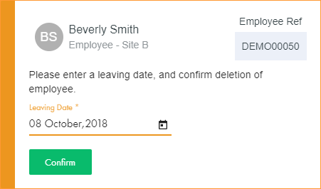 and select a leaving date for the employee. - Click Confirm. The window closes.