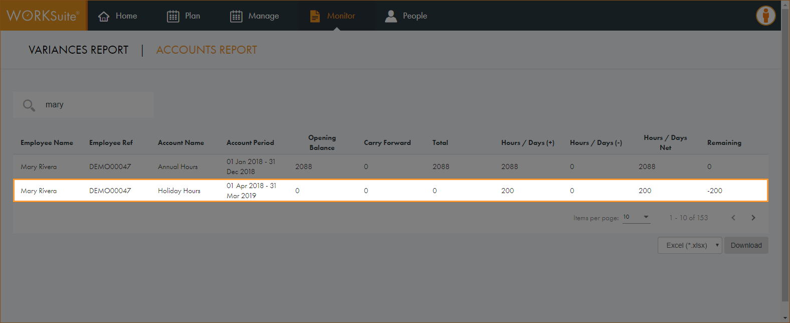 • A variance reason can affect an account positively (add days or hours onto an account), negatively (reduce the number of days or hours on an account) or by a factor other than one. For example, for overtime which is recorded at time and a half, this variance might be attached to an overtime account with a factor of 1.5.