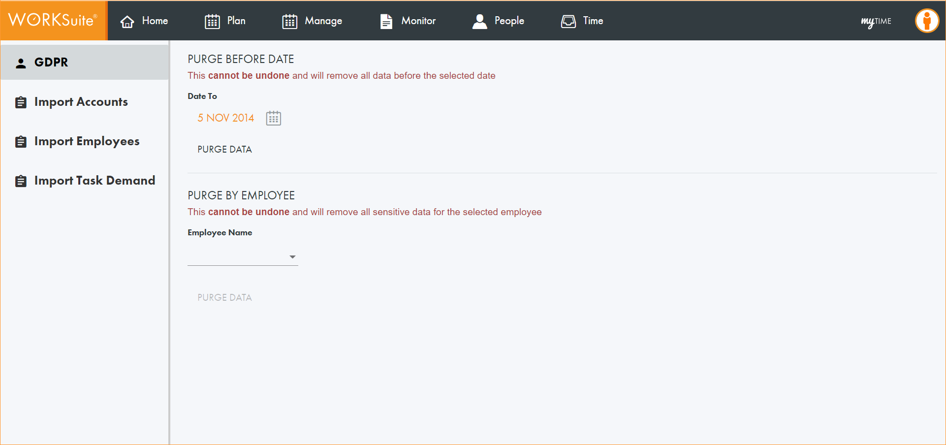 Choose to purge system data to ensure that GDPR is adhered to.